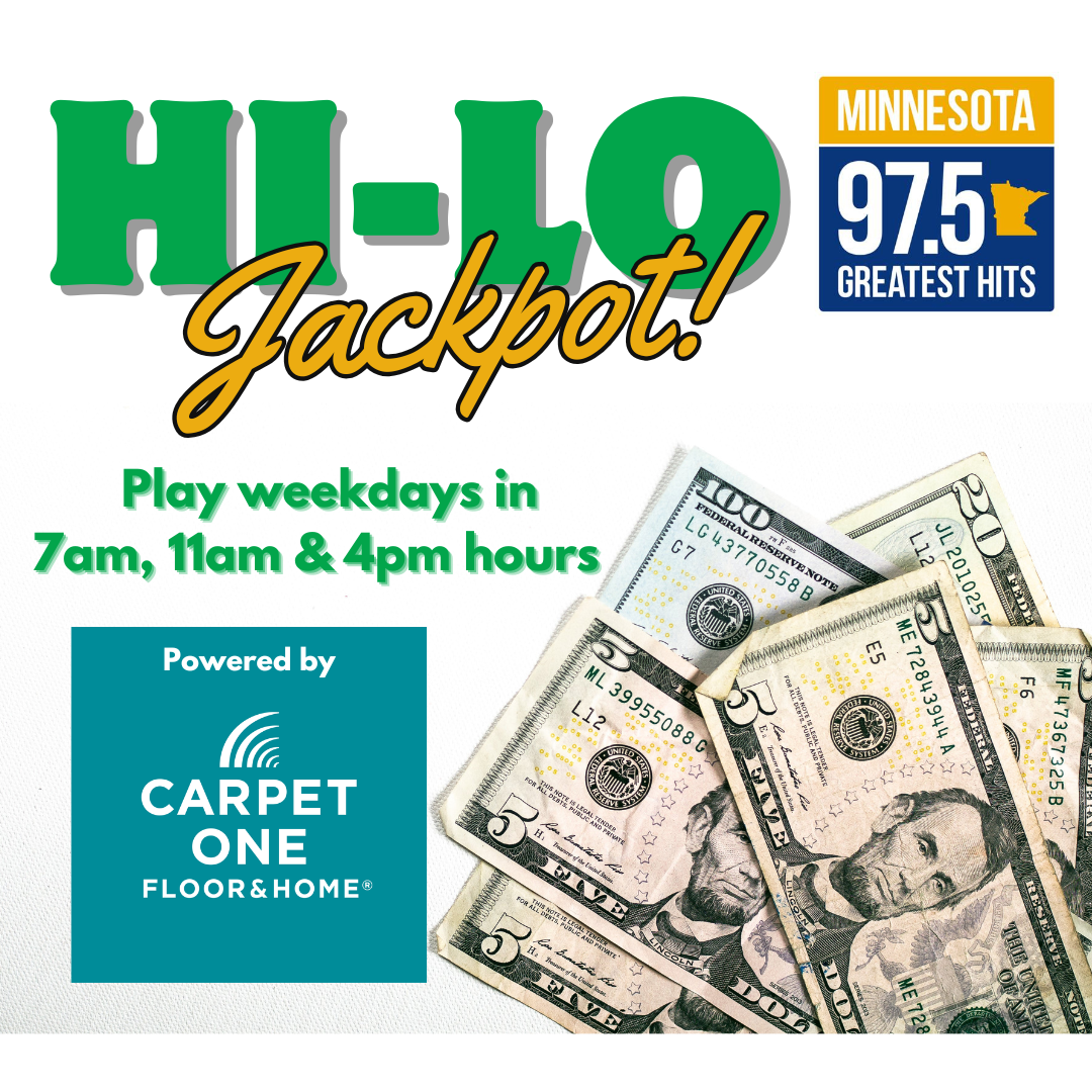 MN 97.5 is giving away hundreds and thousands of dollars in the Hi-Lo Jackpot...powered by Carpet One!
