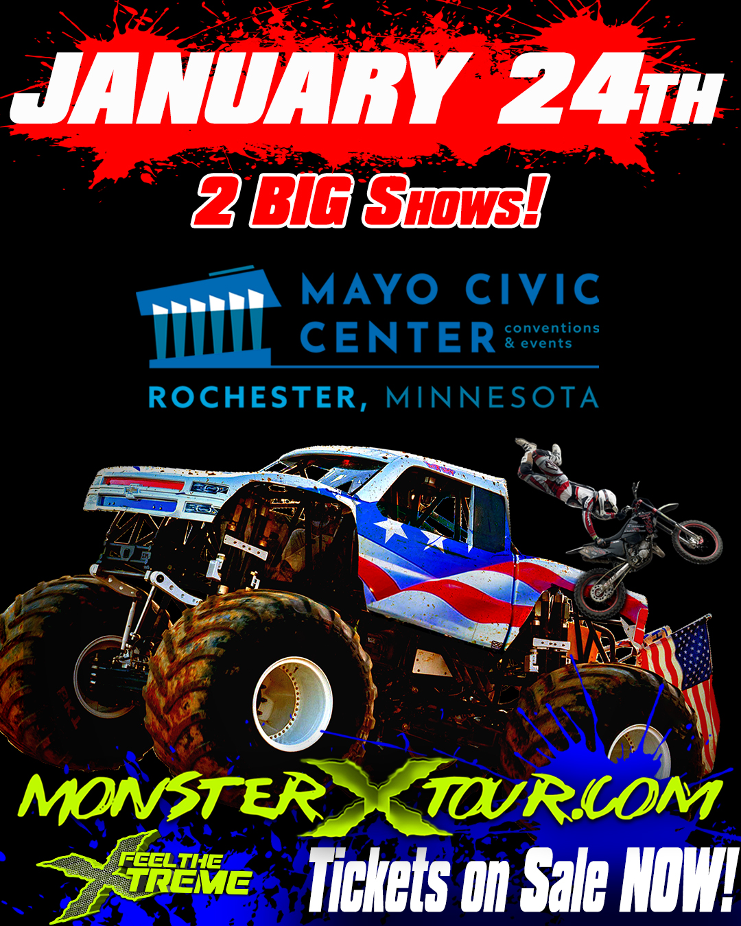 Witness the Thunder as the Monster X Tour comes to Rochester's Mayo Civic Center on Saturday January 31st with TWO monster shows at 1:30pm and 7:30pm!